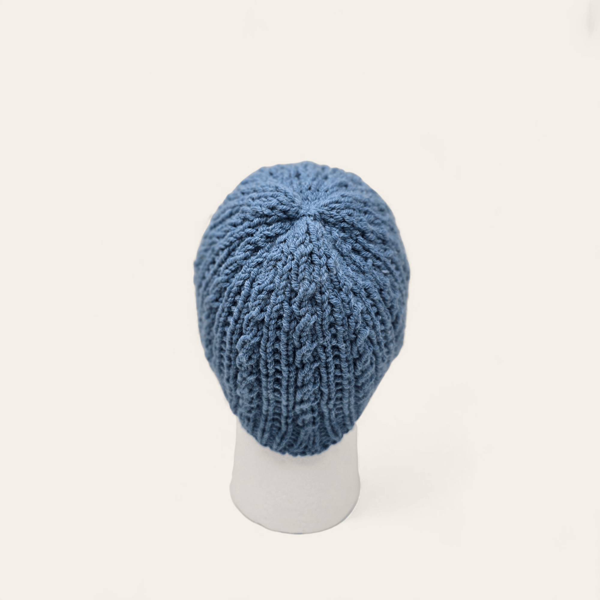 Hand-knit with care using Scheepjes Truly Scrumptious recycled yarn, this cozy beanie has a soft, sturdy texture that keeps its shape and warmth. The detailed stitchwork adds a timeless look you can wear season after season. Sustainable, comfortable, and made to last — a simple favorite for cooler days.